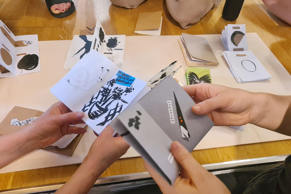 Es wurde dabei mit vorgegebenen Texten gearbeitet und mit unterschiedlichen illustrativen Techniken gespielt.