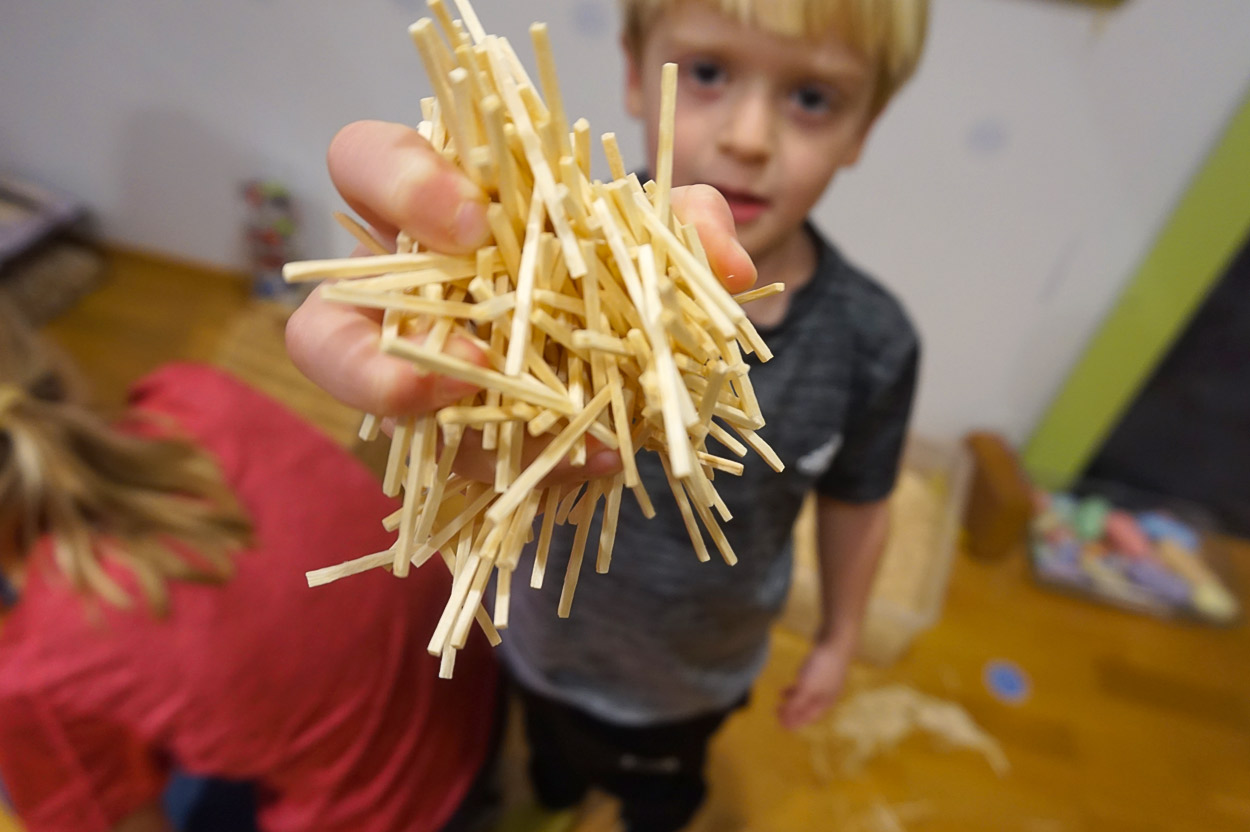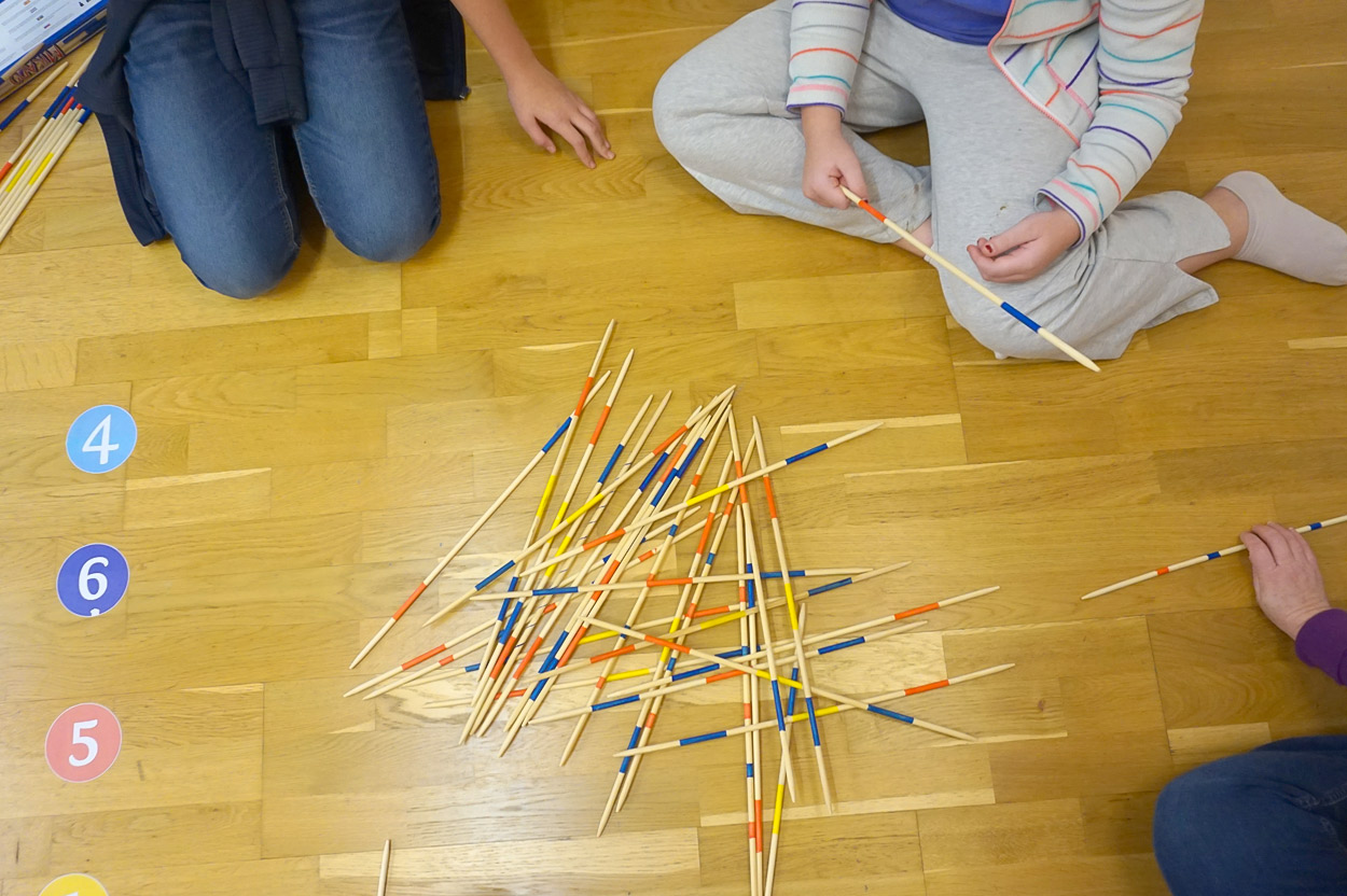 Ob ein Riesen-Mikadostab, mindestens eine Million Holzstäbchen, acht rote und acht blaue Filzkugeln; bei unserer MITMACH-AUSSTELLUNG letzte Woche waren wir ganz erstaunt, was so alles in eine Hand passt. Und was man mit den fünf Finger einer Hand alles machen kann, war noch viel erstaunlicher. Nächste Woche dreht sich bei Sarah dann alles um die Zahl 6, ob in Sachen Nikolo oder Wimmelbuch.