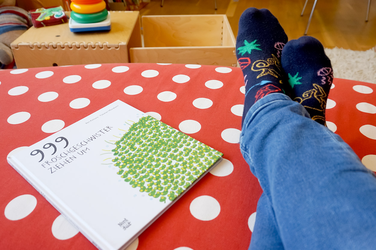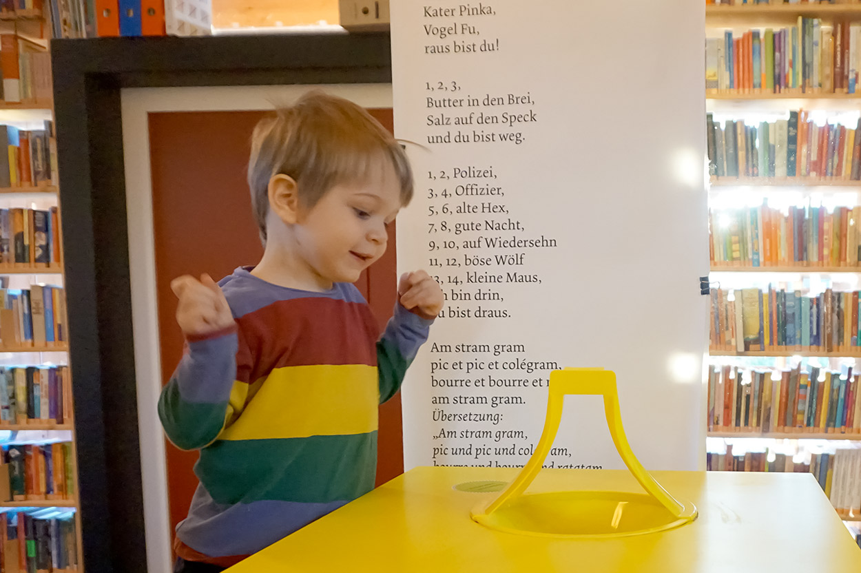 Mindestens 15 Nasen wurden letzten Samstag im Kinderbuchhaus dabei entdeckt, wie sie ganz vertieft und vergnügt zwischen Buchseiten steckten. Aber es würde auch viel gepritschelt, gespielt und selbst Hand an die Stifte gelegt, um sich in unserer