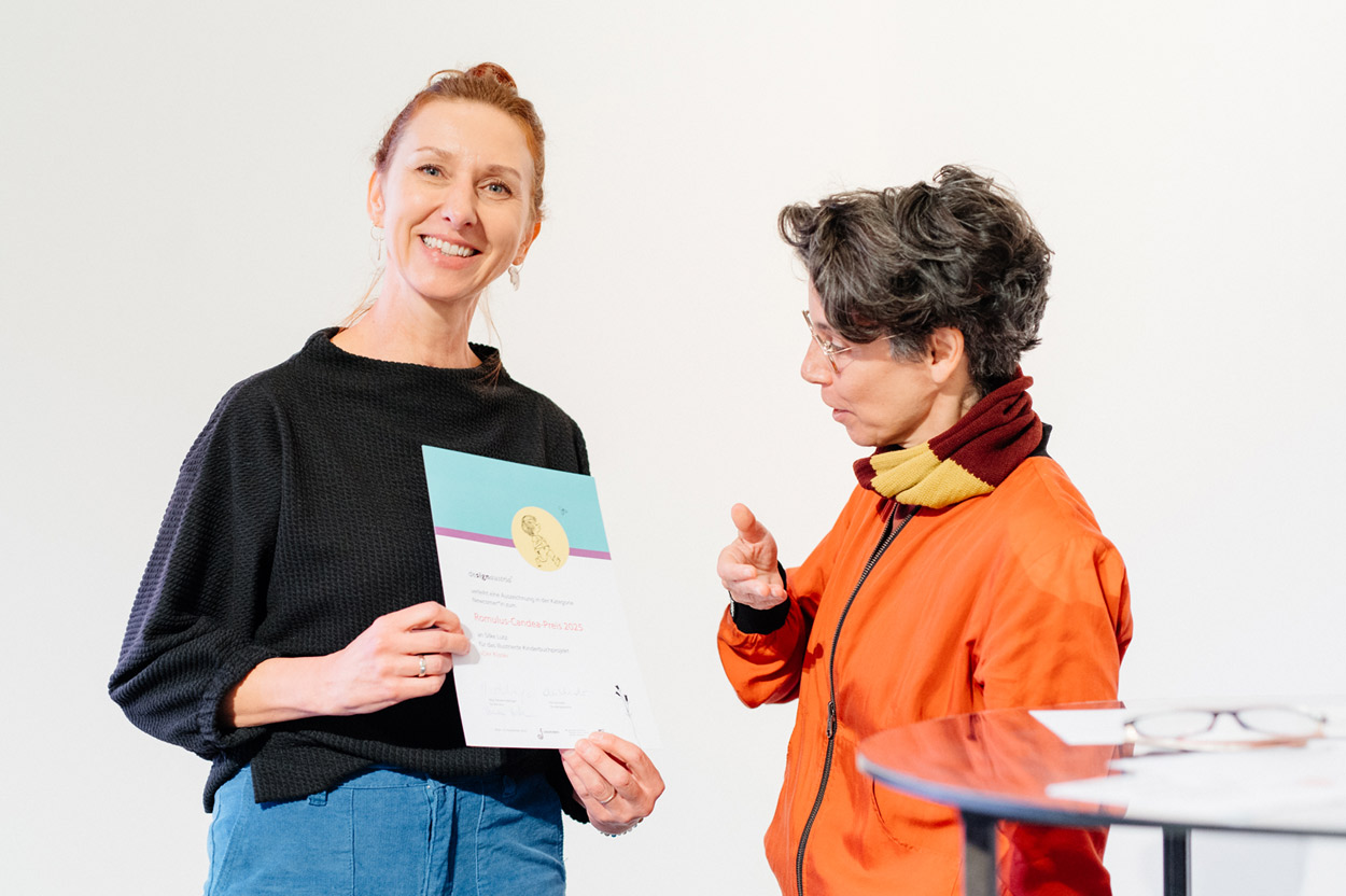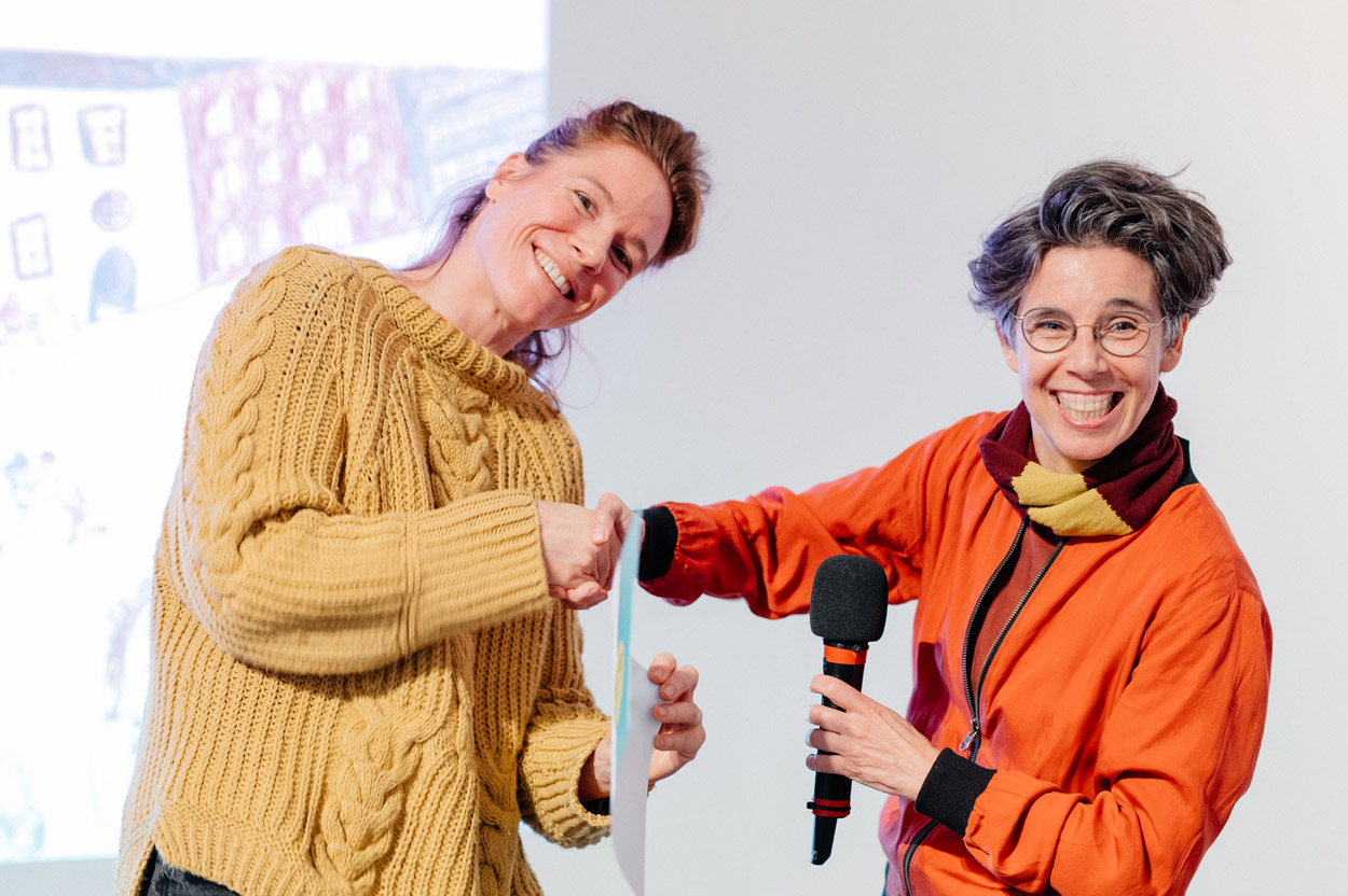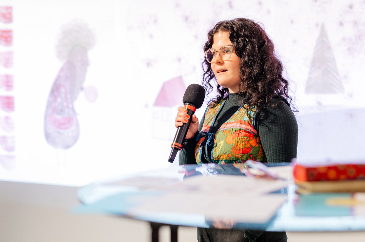 Ausgezeichnete Illustrationsprojekte, angeregte Gespräche über das Geschichtenerzählen in Bildern, viele alt- und neubekannte Gesichter und verdienten Applaus; das war der Romulus Candea Preis 2025. Von Nasen in allen Formen und Farben, Ordnung und Unordnung, hungrigen Mägen, der Reise auf einer Apfelschale ins Traumland, einem irrwitzigen Kiosk, Melonen und Gelsen bis hin zum Mikroplastik. Spannender und vielfältiger hätten die ausgezeichneten Projekte kaum sein können. Das Kinderbuchhaus freut sich besonders, dass dieses Jahr gleich 6 Teilnehmer*innen unseres