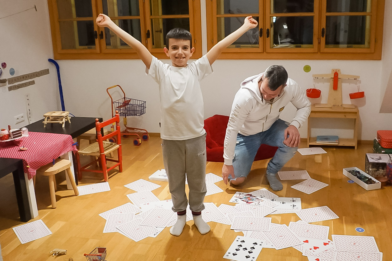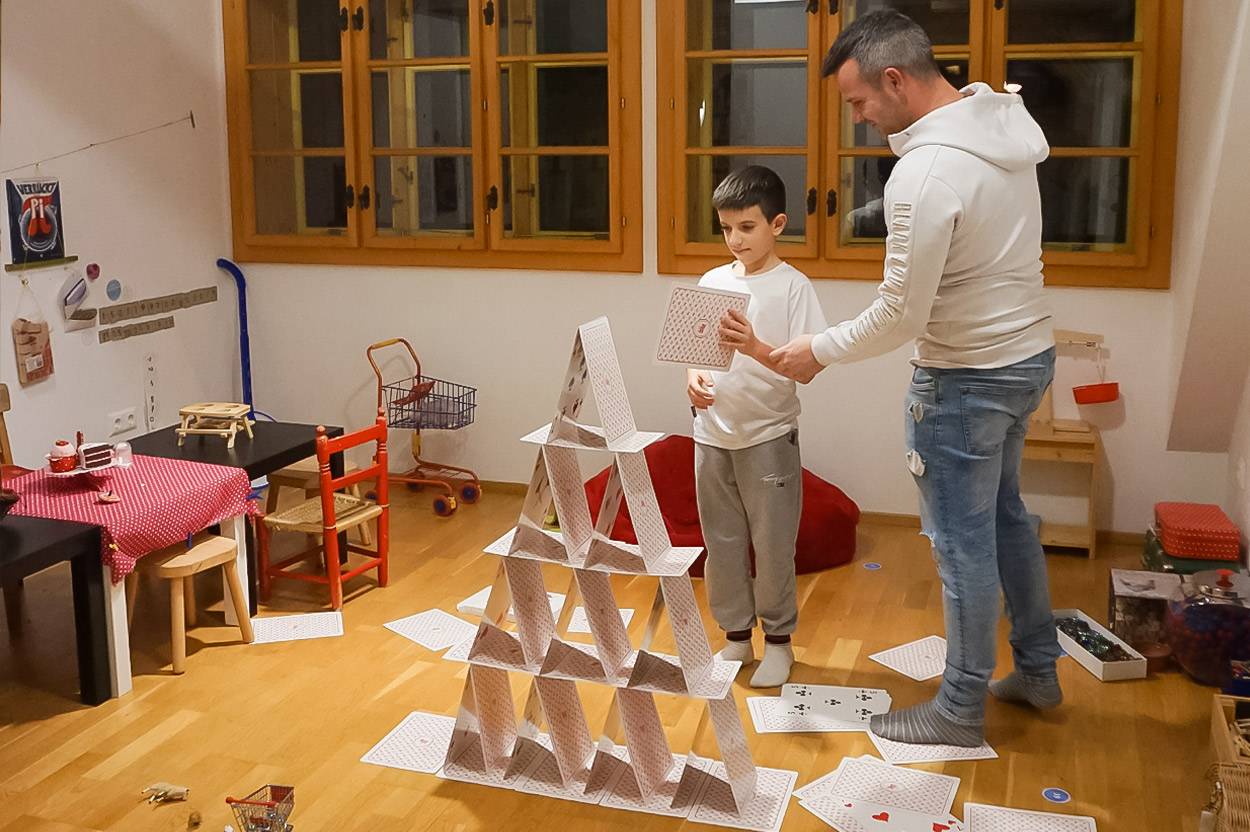 Ob sieben bunte Fäden, um daraus Schlüsselanhänger zu machen, mindestens 7 halsbrecherische Positionen beim Zahlen-Twister, oder die ersten 7, na gut, 8 Karten eines gigantischen Kartenhauses; es war viel los, bei unserer