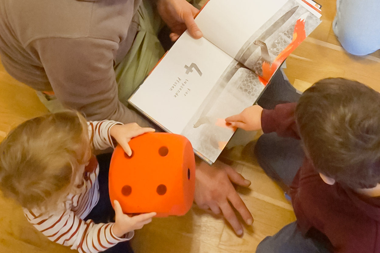 MITMACH-AUSSTELLUNG letzte Woche, aber dann, gab es 3 begeisterte Leser, 4 tapsige Pfoten, 5 Würfel, die plötzlich ein Turm waren und 1000 Menschen in einem Buch, die es ganz genau zu betrachten galt. Manchmal hat man es halt nicht in der Hand, was so passiert. Apropos Hand, nächste Woche interessiert sich Juliana für „Alles über die Hand“, und wir hoffen ihr auch!