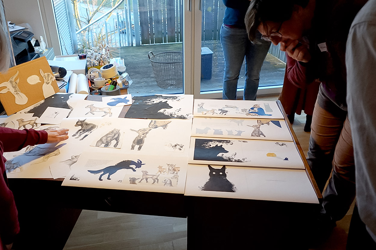 Lehrgang Illustration 2024–2025. Es waren intensive Tage an den Arbeitstischen, mit begonnenen, aber auch neuen Projekten und einem Besuch von