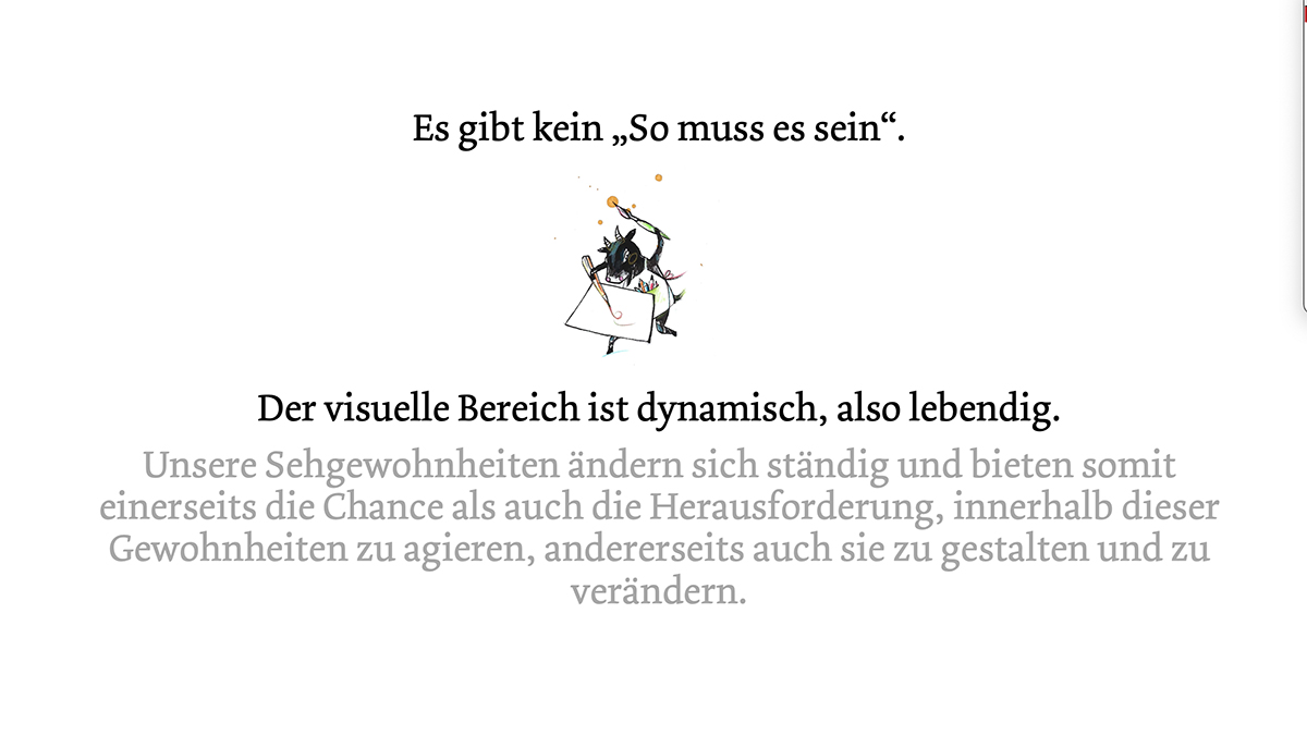 Ziel ist es, das eigene Sehen zu schulen, d. h. Bilder und visuelle Sprachen analysieren und erkennen zu können.
