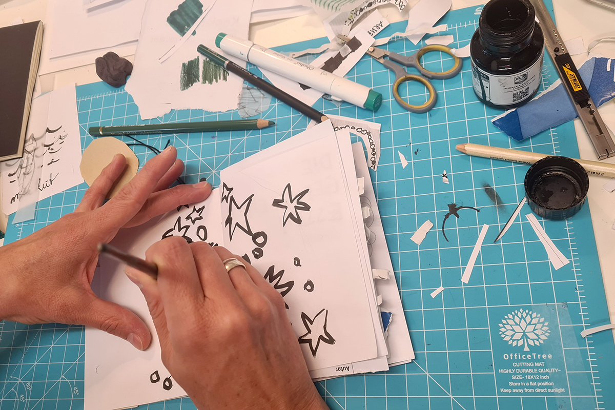 In der Sommerschule stellten wir uns der Herausforderung, Entscheidungen zu treffen – um sie dann genussvoll wieder zu verwerfen. Es gibt kein Rezept, um einen Text zu illustrieren. Es gibt eine Vielzahl an Ansätzen und Ideen, aus denen wir lernen können.