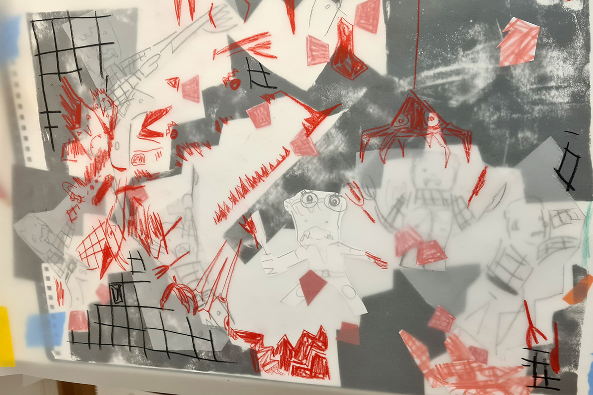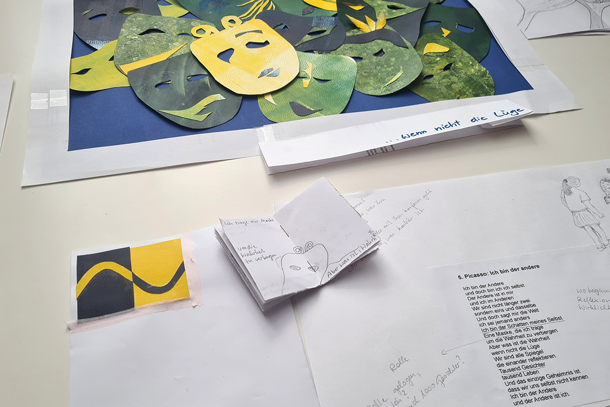 Es wurde dabei mit vorgegebenen Texten gearbeitet und mit unterschiedlichen illustrativen Techniken gespielt.