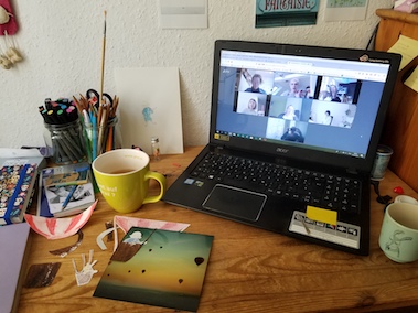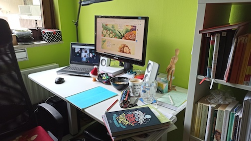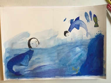 Zweitimpulse mit der Weiterarbeit am bereits begonnenen eigenen Projekt, Gespräche, Feedback, konzentriertes Arbeiten allein – wenige Tage, aber dafür umso intensiver genutzt! Gemeinsam wurde aber auch in Gesprächen die Bildspannung auf einer Doppelseite erforscht, der Spannungsbogen in ausgewählten Büchern anhand von kleinen Storyboards untersucht und beim Kopieren von Figuren waren vor allem die Gesichter ein Thema. Lernen von anderen, voneinander und lernen miteinander.