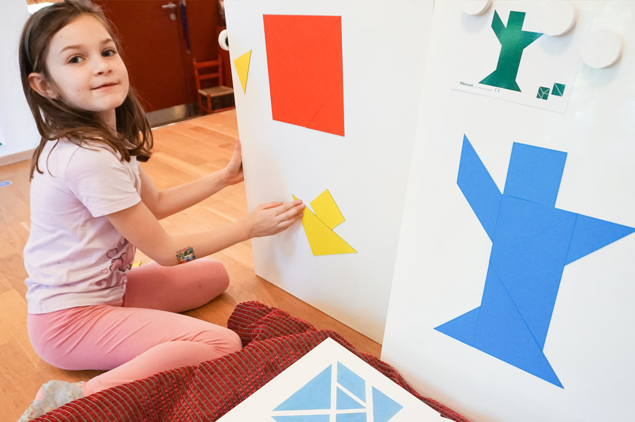 Exponentielles Wachstums als Thema für ein Bilderbuch? Klingt kompliziert, ist es aber nicht. Es beginnt mit einem großen grünen Punkt + ein braunes Rechteck als Stamm = ein Baum. 1 + 1, 2 grüne Punkte sind zwei Bäume, auf denen, 2 + 2 = 4, vier Apfel-Punkte hängen. So wird Seite um Seite, nach dem Prinzip des Verdoppelns weiter addiert. Während die Zahlen wachsen, werden die Kreise kleiner, werden Punkte, brauchen mehr und mehr Platz. Das veranschaulicht nachvollziehbar Steigerung und das Verhältnis von Mengen. Ein ungewöhnliches Bilderbuch; einfach wie komplex, reduziert und doch ausgetüftelt.